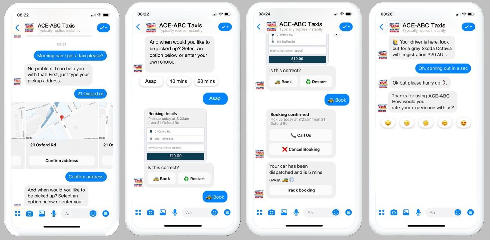 After months of extensive development ACE-ABC are excited to announce the activation of our new Facebook Messenger booking service. Once again ACE-ABC are one of the leading companies in the taxi industry, breaking new ground with outstanding technical innovations. Why not give our new Taxi-Bot a try, just visit our facebook messenger and answer a few simple questions to book a car.
